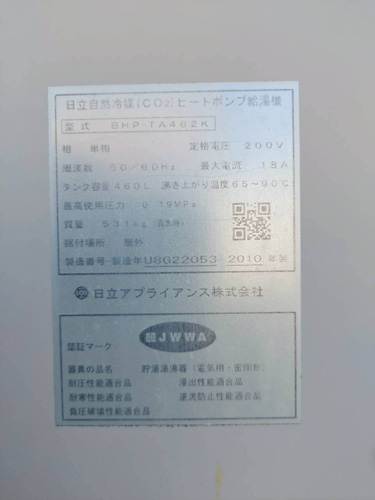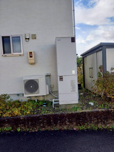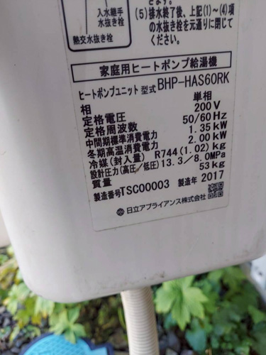 都城市山田町山田 日立家庭用ヒートポンプ給湯機ヒートポンプユニットBHP-HAS60RK、自然冷媒CO2ヒートポンプ給湯機BHP-TA462K→コロナ自然冷媒CO2家庭用ヒートポンプ給湯機ヒートポンプユニットCHP-DZ451K エコキュート交換工事