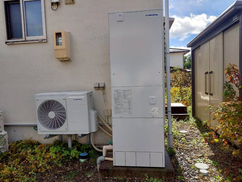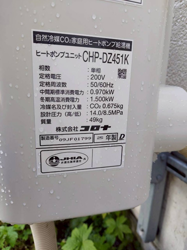 都城市山田町山田 コロナ自然冷媒CO2家庭用ヒートポンプ給湯機ヒートポンプユニットCHP-DZ451K エコキュート交換工事