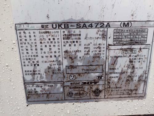 都城市横市町 コロナ石油給湯機付ふろがまUKB-SA472A(M) 給湯器交換工事
